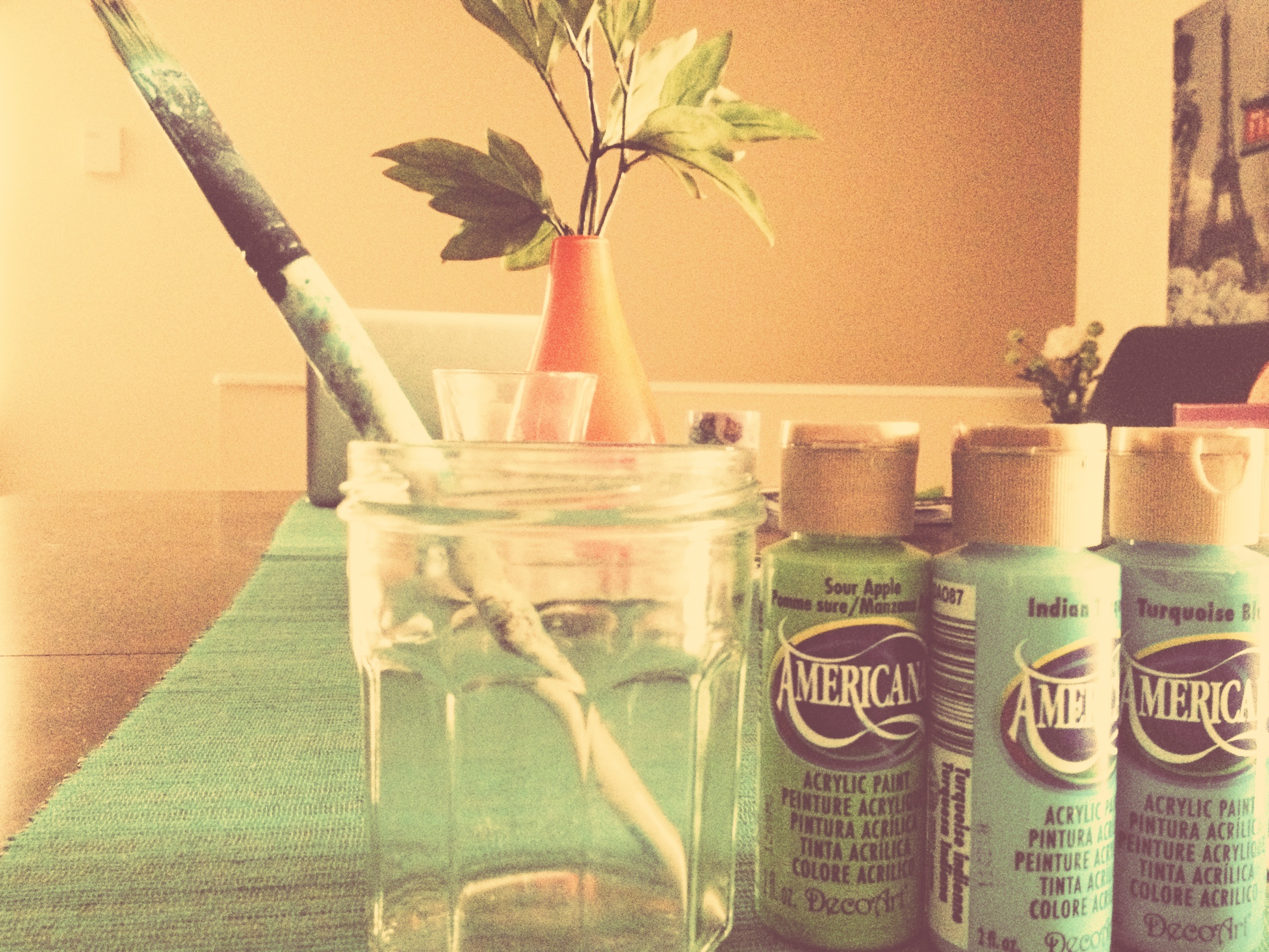 3. Use glass jars to store your paint brushes, and the water you will need to clean them.